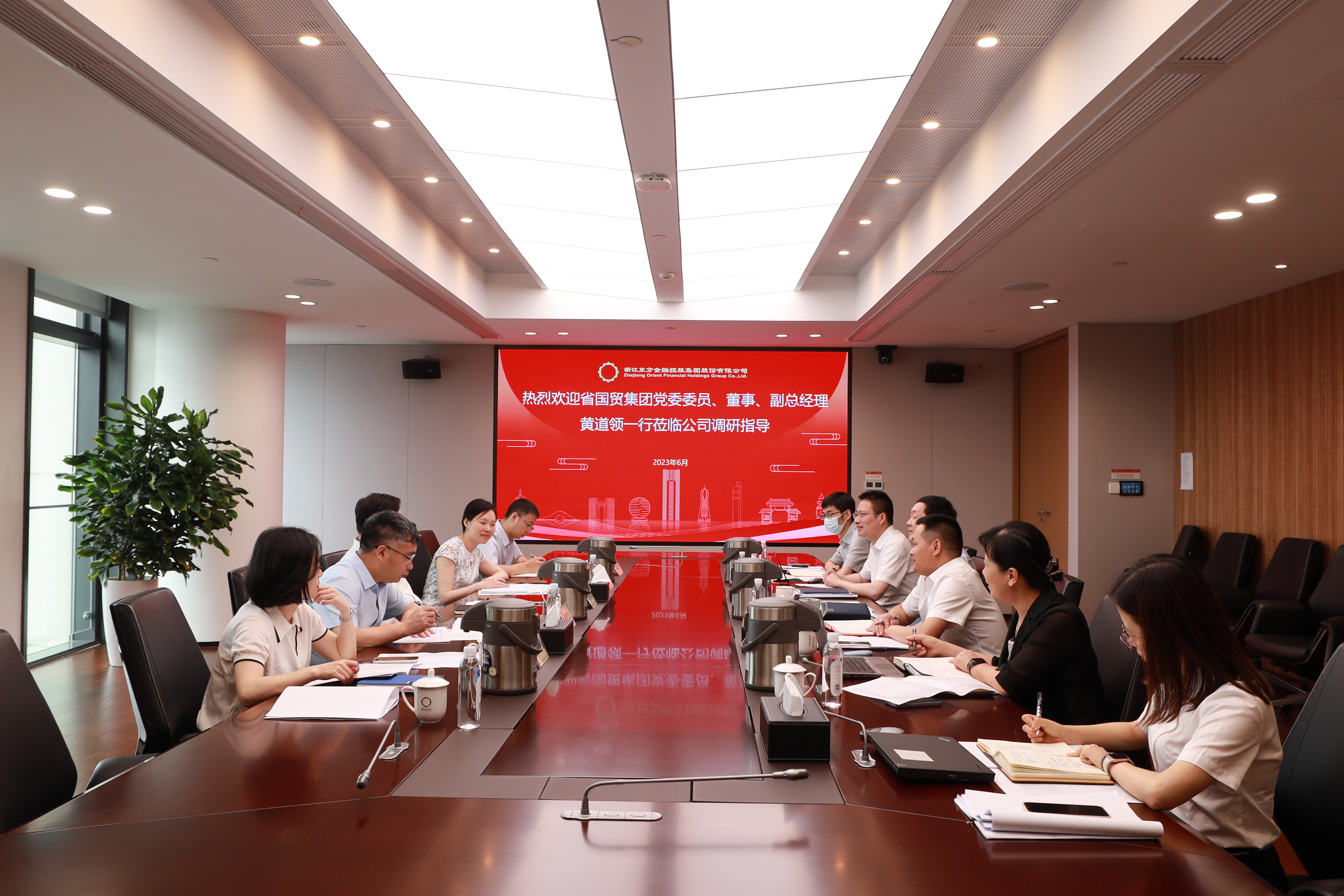 近日,省國貿集團黨委委員、董事、副總經理黃道領蒞臨公司調研指導,集團投資管理部副總經理(主持工作)余冬筠,副總經理曹學文陪同。浙江東方黨委副書記、總經理徐曉東,黨委委員、副總經理王正甲,投資管理部、資產財務部及東方產融相關人員參加調研交流。