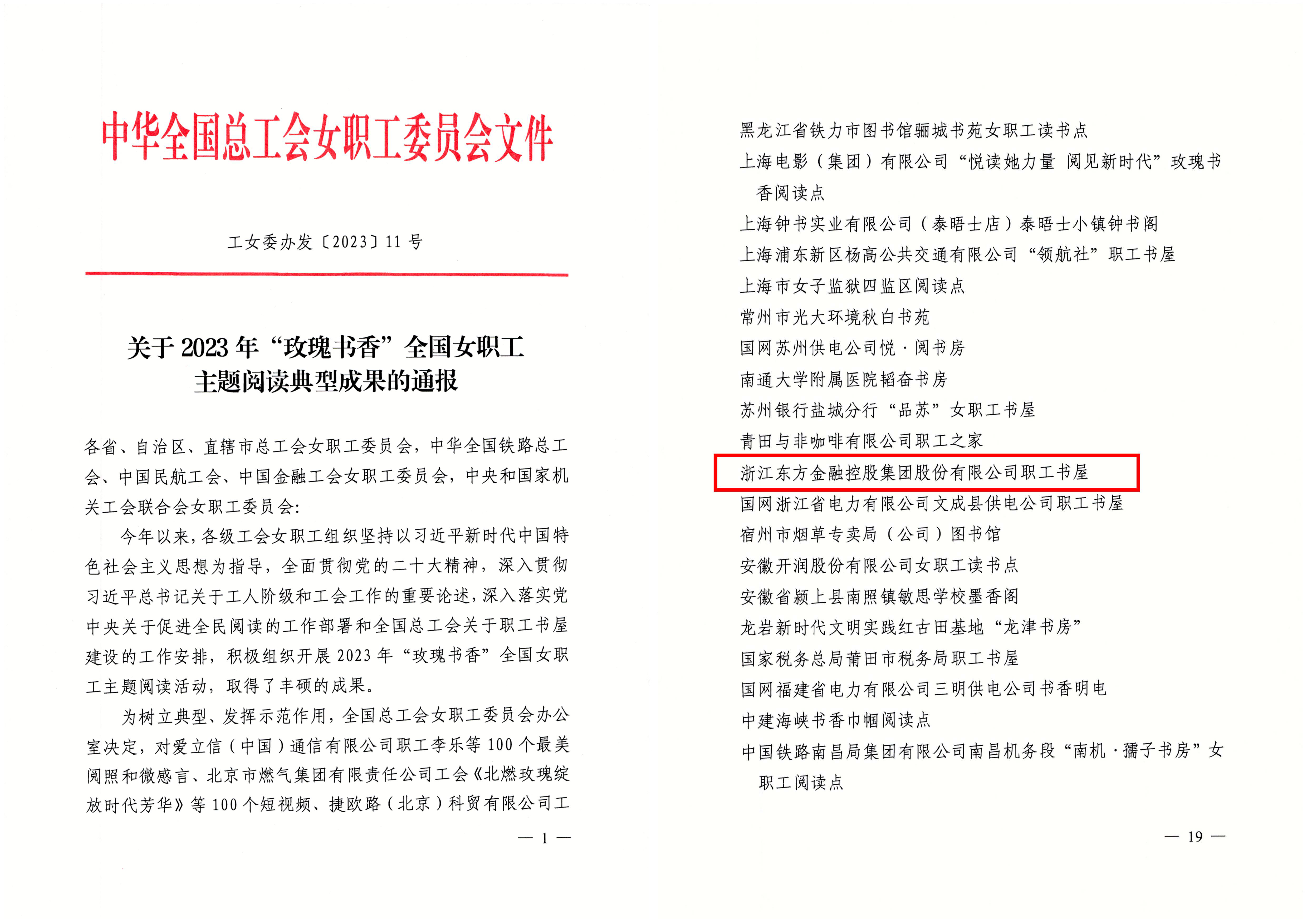 近日,中華全國總工會女職工委員會發文公布2023年“玫瑰書香”全國女職工主題閱讀典型成果名單,浙江東方職工書屋獲評全國一百個“玫瑰書香?最美女職工閱讀點”之一。此次評選是全國總工會女職工委員會為樹立典型、發揮示范作用,深入落實黨中央關于促進全民閱讀工作部署和全國總工會關于職工書屋建設工作的重要內容。